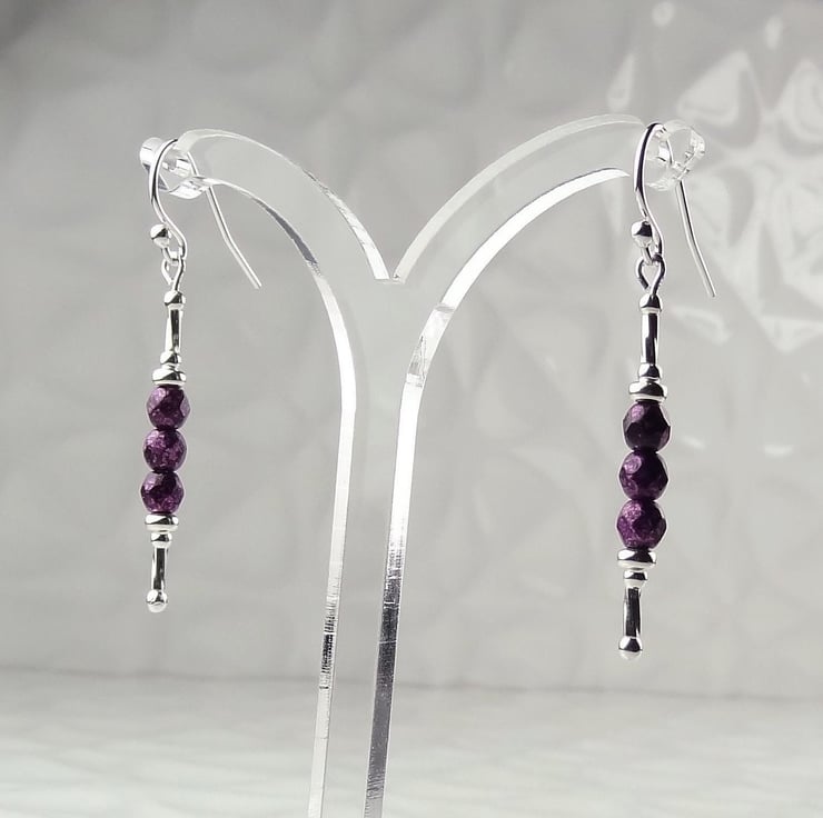 Sterling silver & dark metal purple 4mm fire polished Czech glass drop earrings
