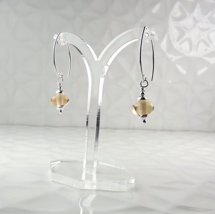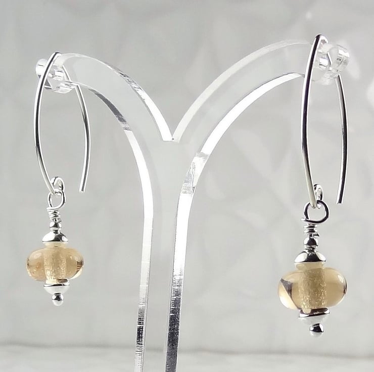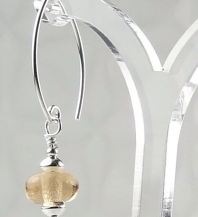 The artisan lampwork glass beads are handcrafted by a glassmaker in the UK. I then use these handcrafted glass beads to make into drop/dangle earrings using sterling silver findings and wires throughout.