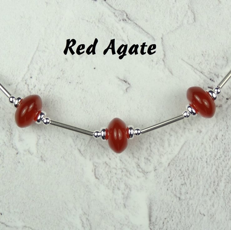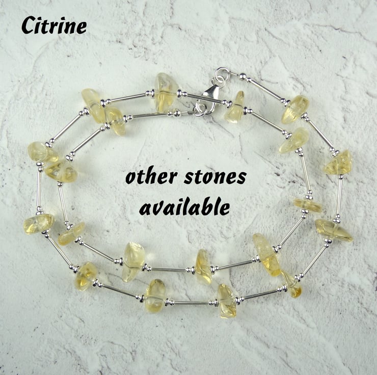 Sterling silver and natural stone beaded necklace - 18 inches/46cm long - strung on durable Beadalon 49-strand beading wire, and finished with a lobster clasp.