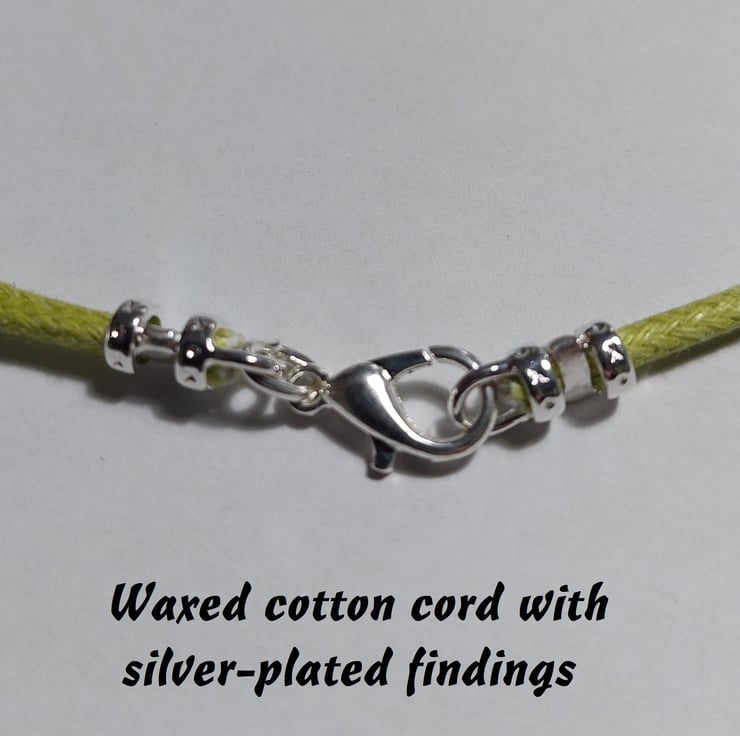 Choose from an 18-inch or 20-inch waxed cotton cord, colour-coordinated or in classic black, finished with silver-plated findings and a lobster clasp.