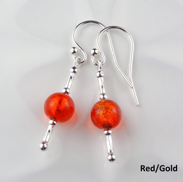 Murano glass drop earrings, sterling silver, 6mm, genuine, 2 colours, gift box