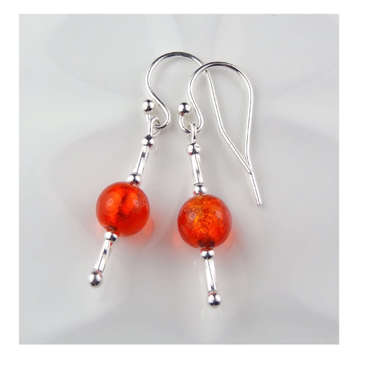 Sterling silver 6mm Murano glass drop earrings, nicely presented in a gift box. The sterling silver twisted tubes are 4mm each in length. The Murano glass beads have been bought from a trusted and reputable supplier in the UK and the earrings have then been made by myself.