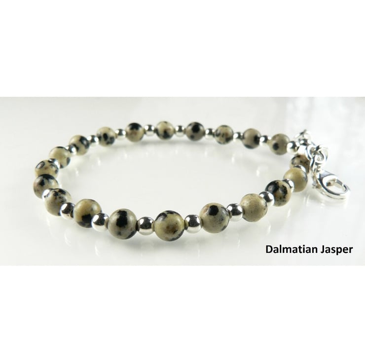 4mm natural stone beaded bracelet with lobster clasp, with 3mm sterling silver beads.