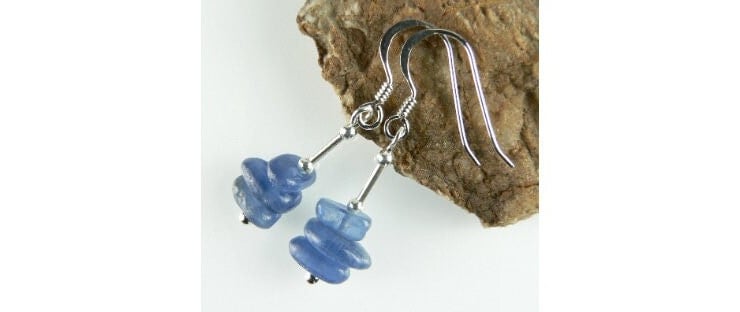 Sterling silver Kyanite nugget natural stone earrings, which will arrive nicely presented in a gift box. These are small and dainty.