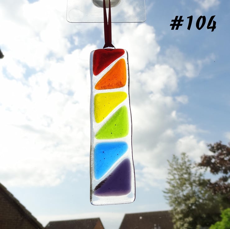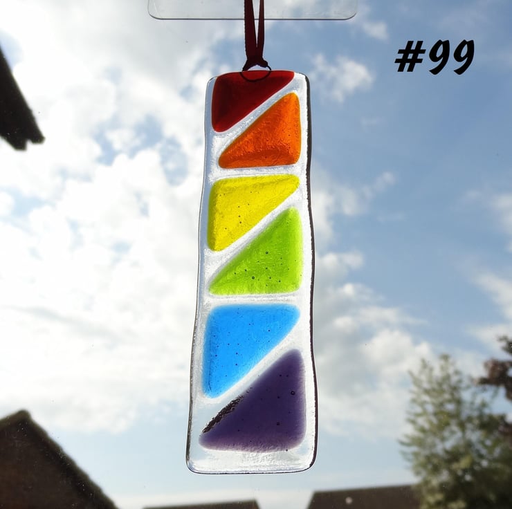 2 options - rainbow coloured triangle pattern handcrafted fused glass suncatcher