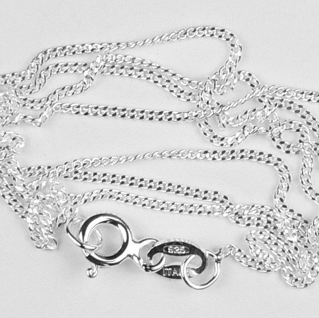 There are 16 different colours to choose from - select your preference with the drop down tab. These necklaces come with a 16 inch or 18 inch sterling silver fine curb chain. Use the drop-down tab to select your preferred length of chain.