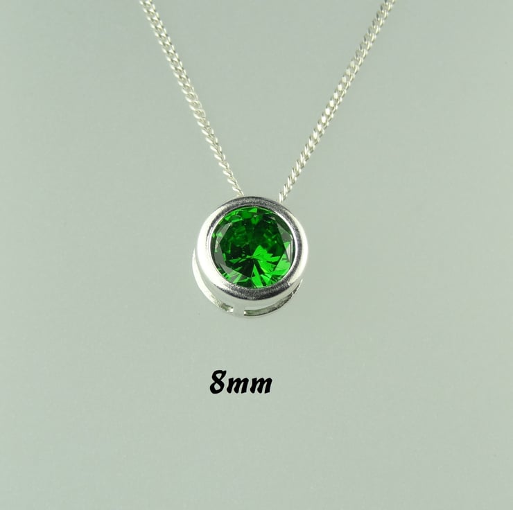 These slider floating necklaces are made using beautiful coloured 8mm Cubic Zirconia stones set in sterling silver, and have been hand crafted by myself, and are made to order.