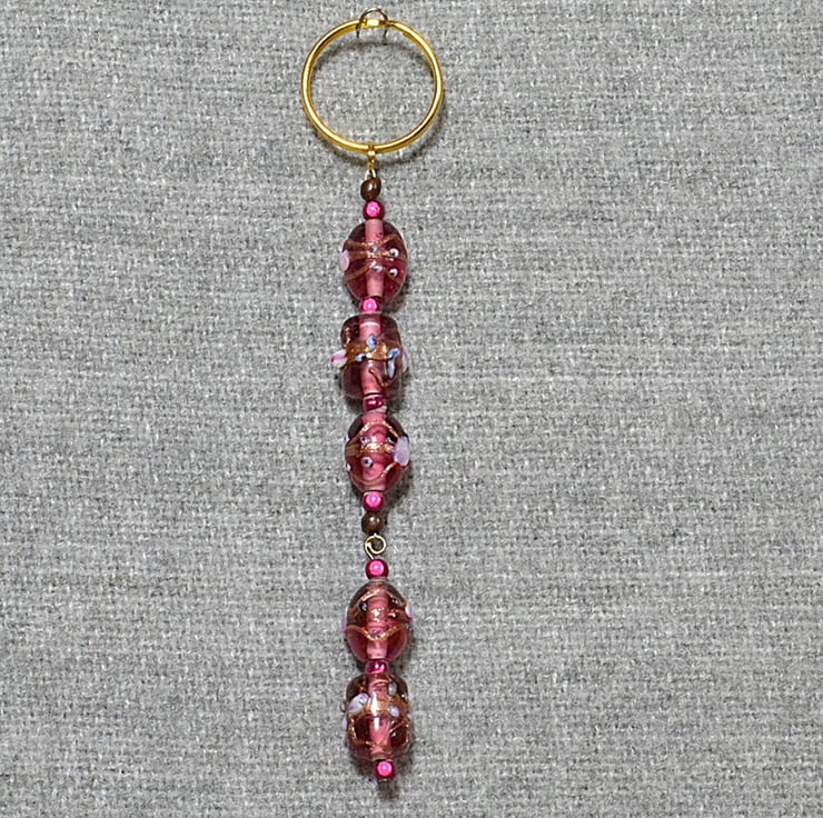 Keyring or Bag Charm – with Decorative Pink Glass and Deep Pink Miracle Beads
