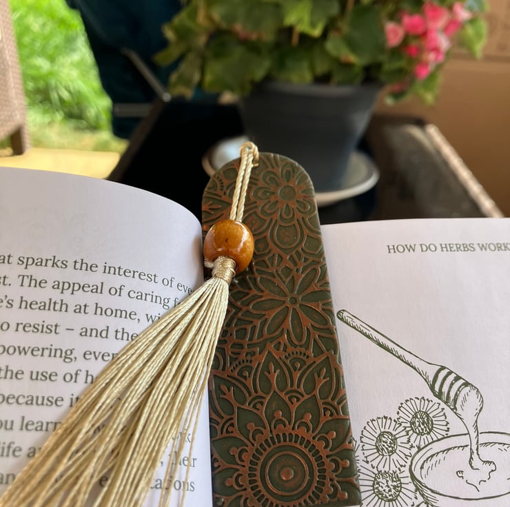This pretty bookmark is made from polymer clay, it is quite flexible but must not be bent.