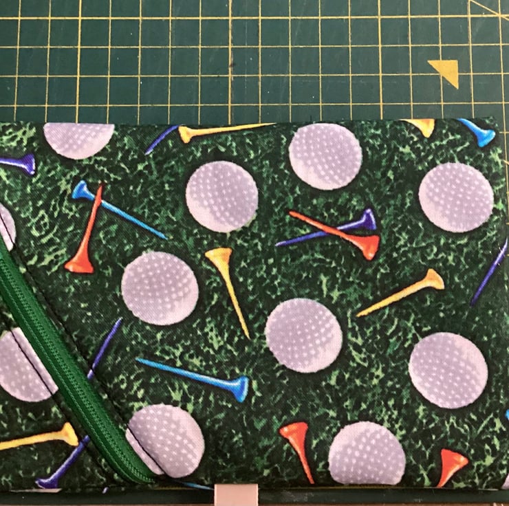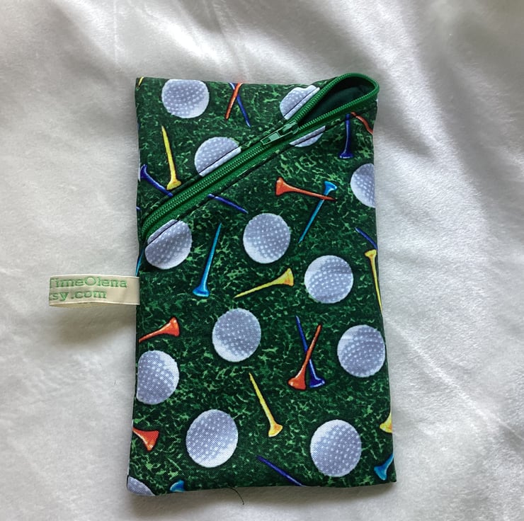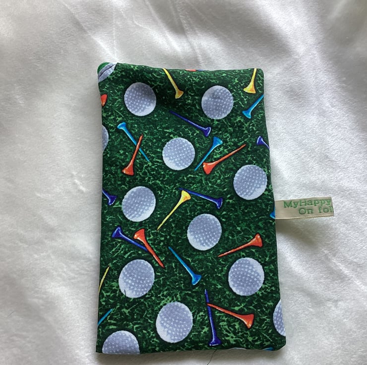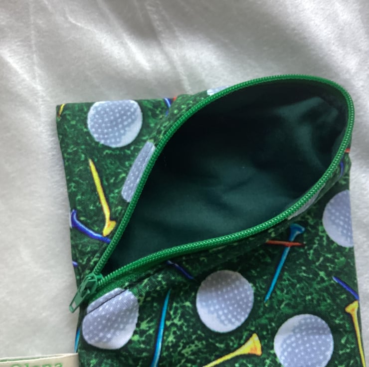 Beautiful pouch made from Golf cotton fabric. The pouch is lined with complimentary cotton fabric and padded with polyester wadding to protect your glasses .