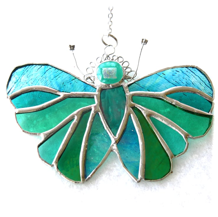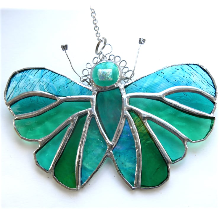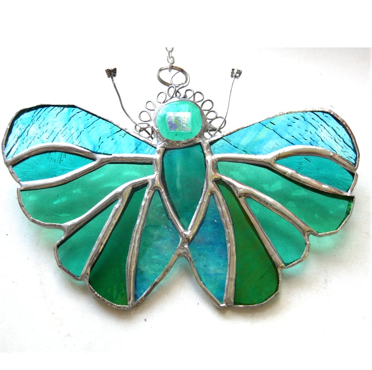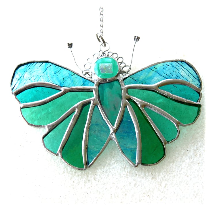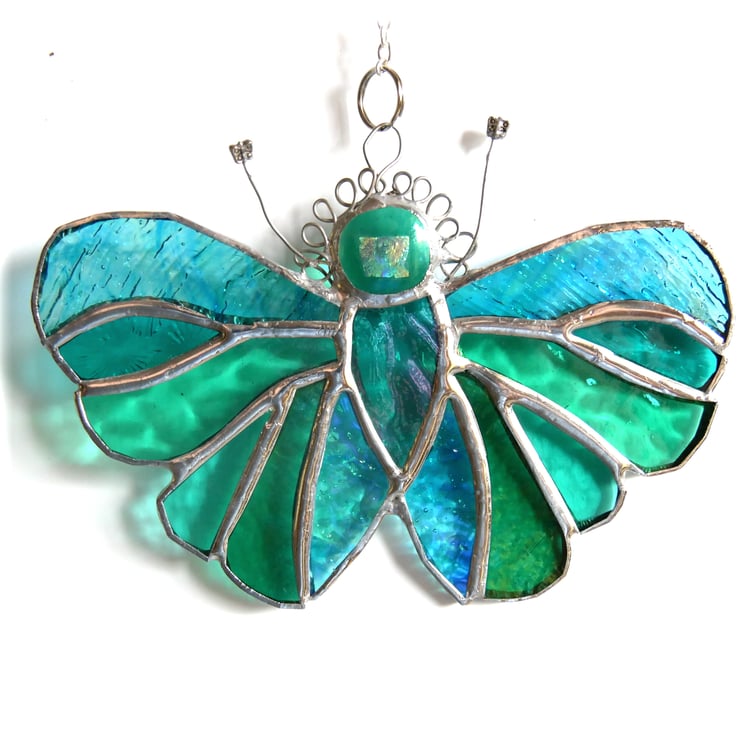 A butterfly to the same design as my Rainbow version but in rather forgeous teal coloured glass. Turquoise green and Turquoise blue go exceptionally well together in my eyes.