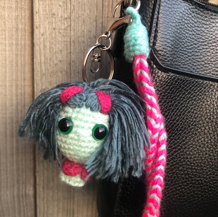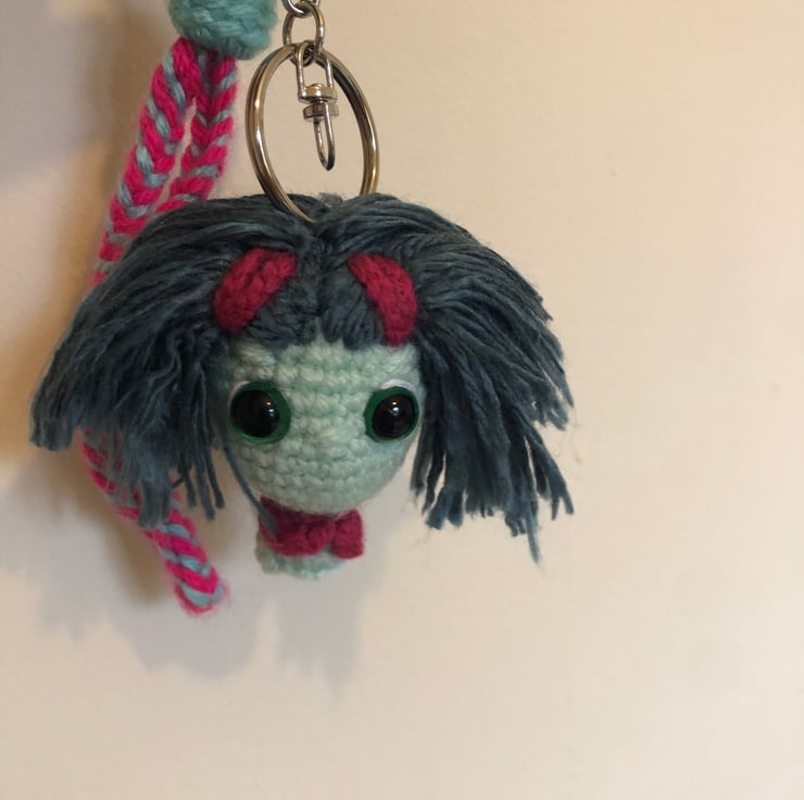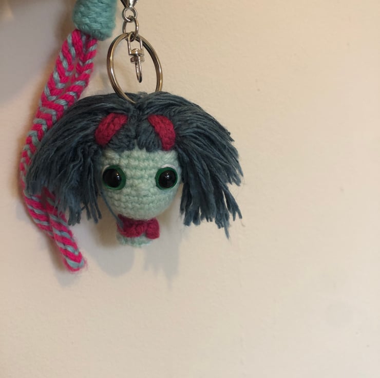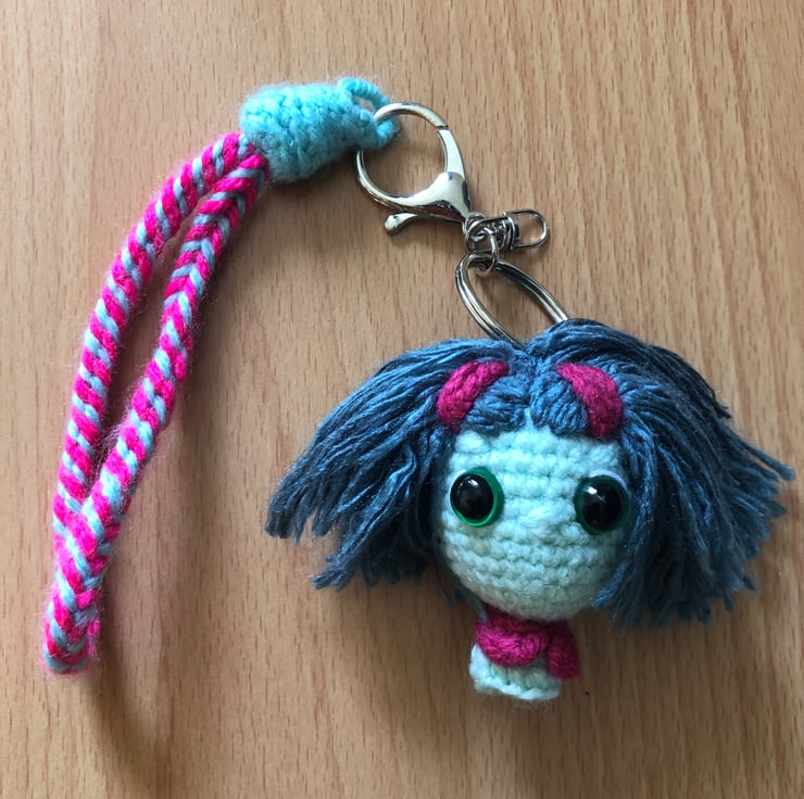 Amigurumi Keychain – Inside Out Crochet with Grayish-Blue Hair