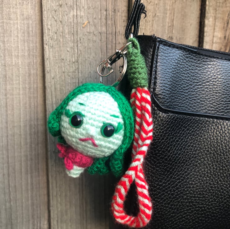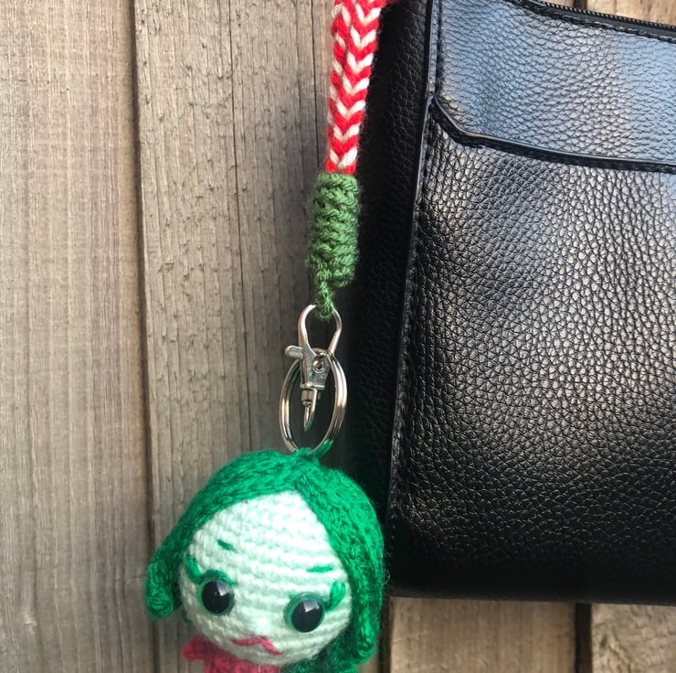 Inside Out - Amigurumi Keychain - Crochet Girl with Green Hair