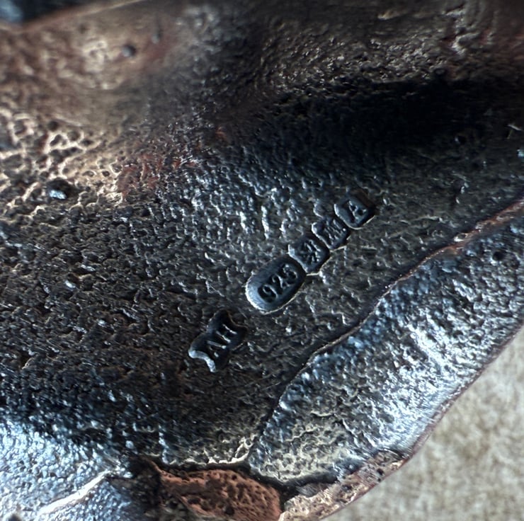 This piece has been assayed and hallmarked at the Edinburgh Assay Office with a traditional full Scottish/UK hallmark for 925 Sterling silver. It is stamped with Alex's unique makers mark which is recorded in the Edinburgh Assay Office historic hallmarking archive. Please see photos.