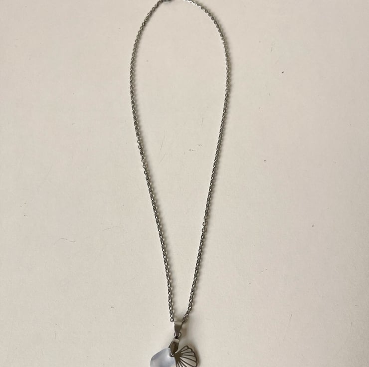 Sea glass necklace with shell charm. Made of 304 stainless steel so it’s tarnish resistant.