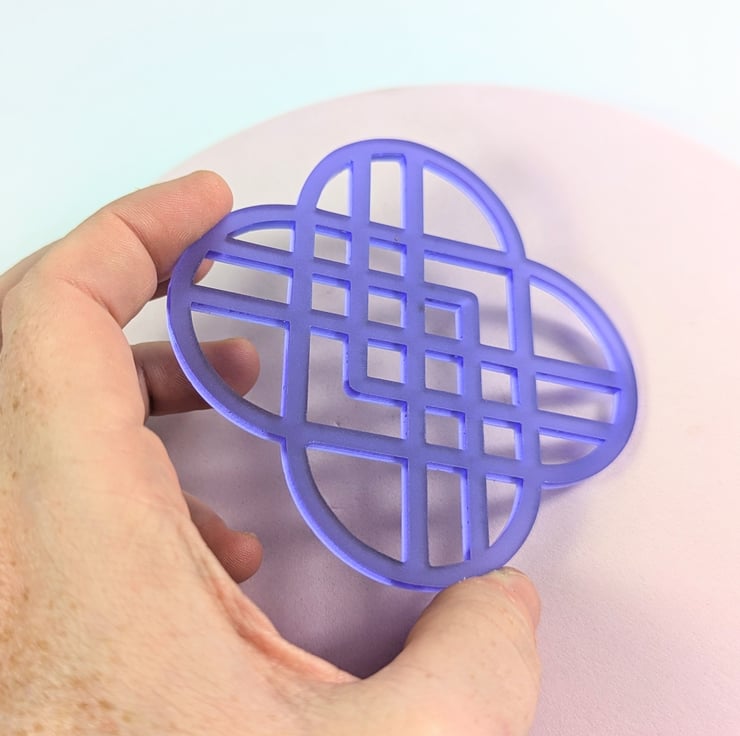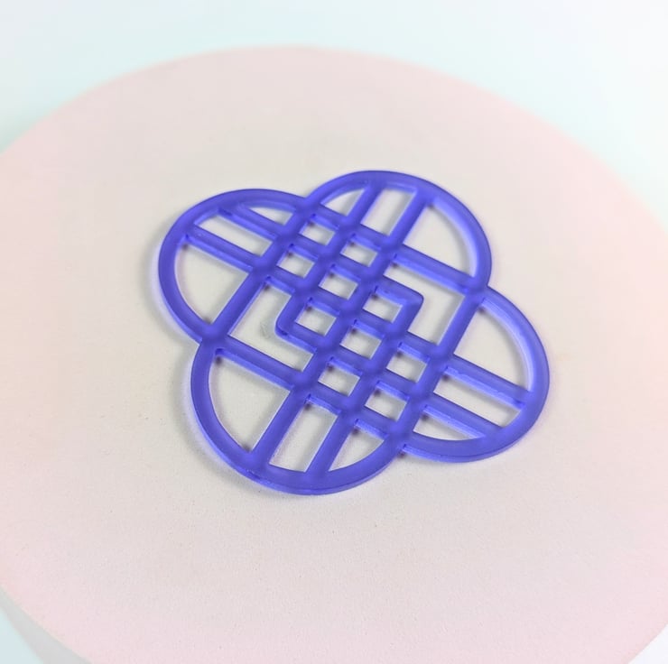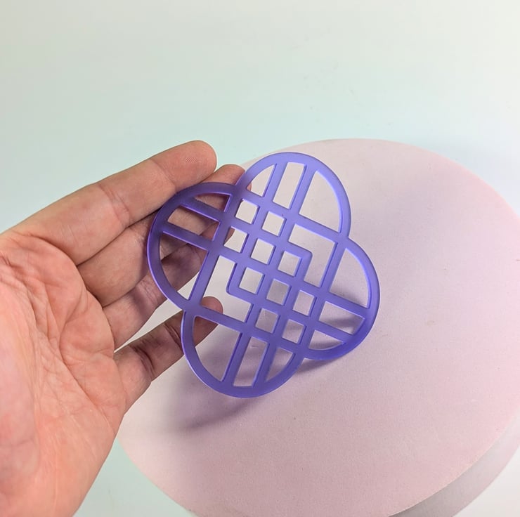 A beautiful and well-made coaster inspired by the K-pop Demon Hunters film featuring the symbol of the Girls band Huntr/x with a purple frost acrylic. It can also be used as a decoration. Made with high-quality materials and by hand.
