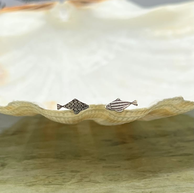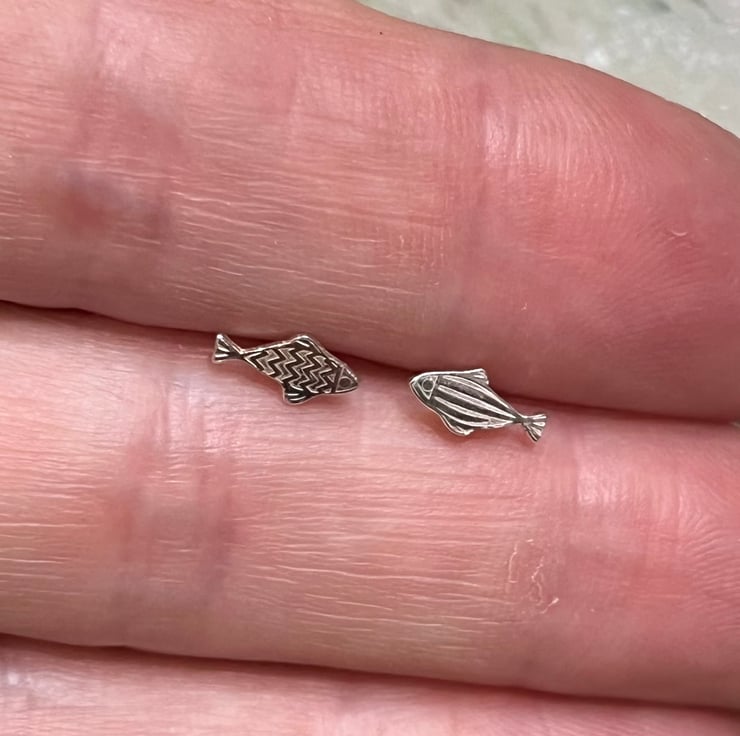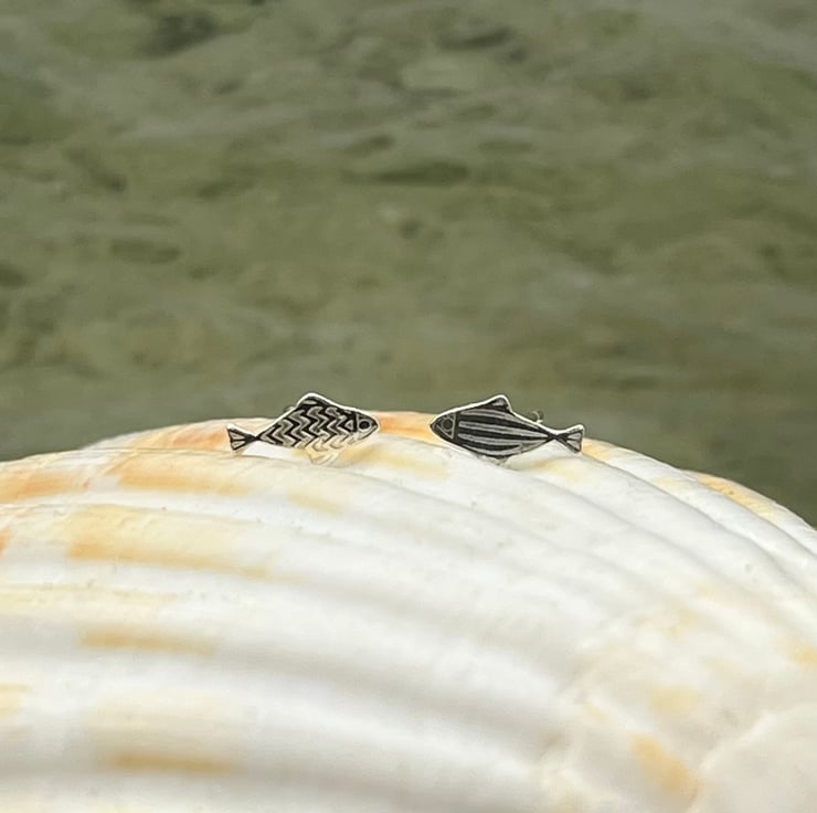 Teeny tiny mismatched fish for your ears. Perfect for everyday and for trips to the seaside!