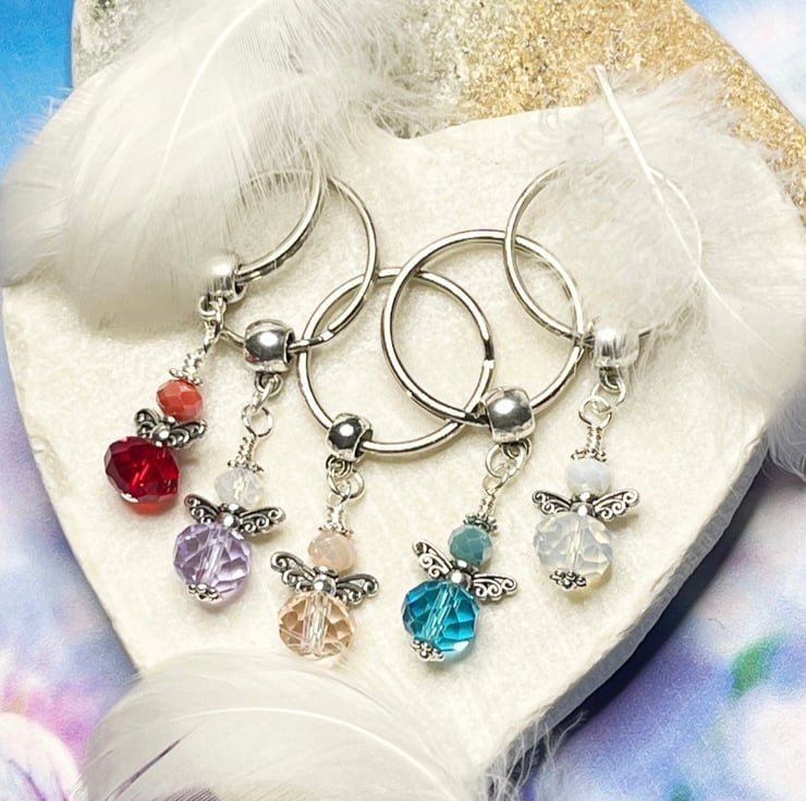 These sparkly little angels are made with 10 mm and 6 mm faceted crystal beads in a variety of different colours. They have little silver tone wings and wear a tiny silver halo. Each Angel is about 2.5 cm and they sparkle in the light beautifully.