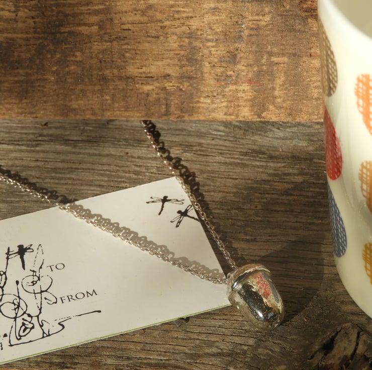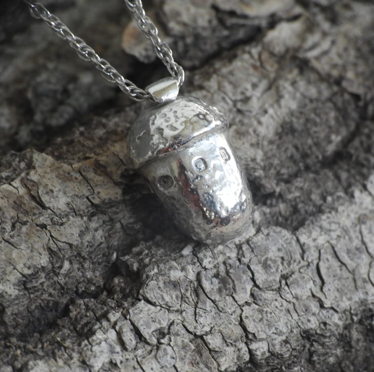 As the acorn is fully hallmarked and cast from a natural object, it bears the honesty marks of such craftsmanship and will not have the immaculate finish you would see on an item from a High Street jeweller. This is because mass-produced objects are designed to be the same every time and are factory-finished with industrial machines. With this pendant, you are buying something that is truly unique, and which honours the time and talent that has gone in to creating it.