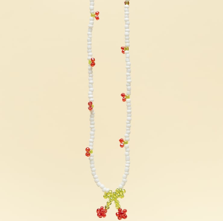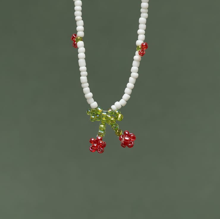 Beaded Cherry Pendant Necklace - Smoothie Collection.