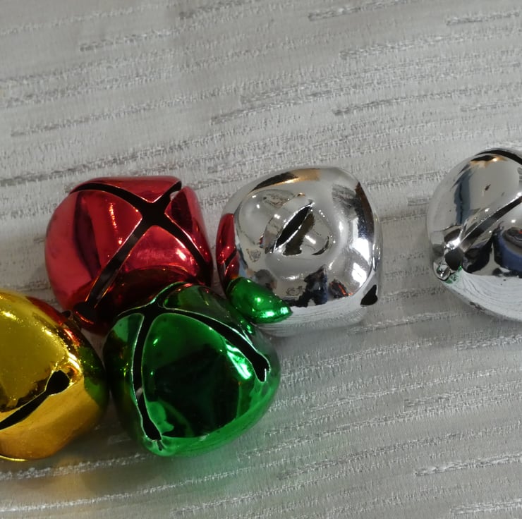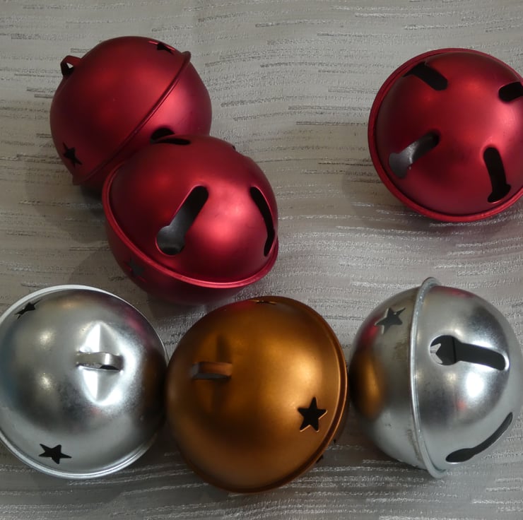 3cm bells: 2 x silver, 1 x gold, 1 x red, 1 x green