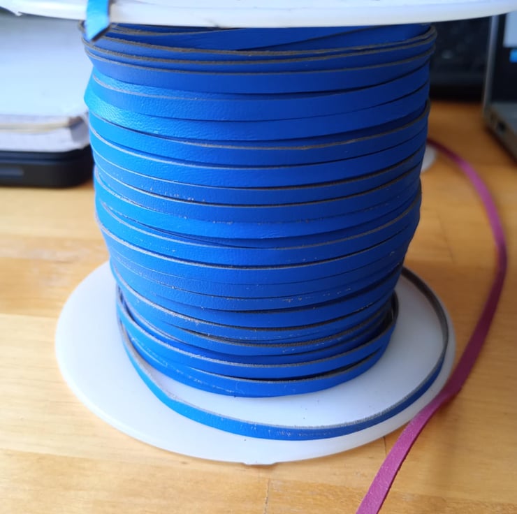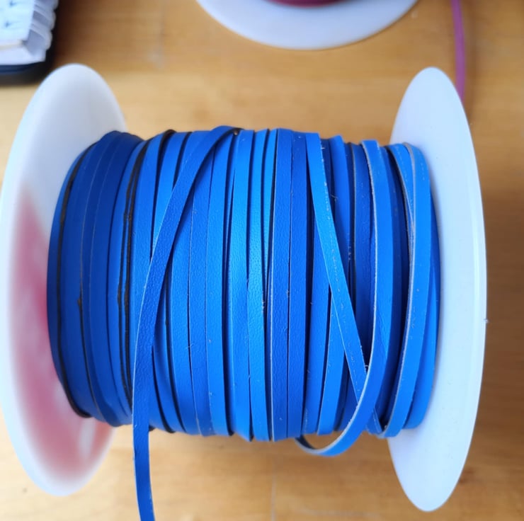 Beautifully tactile leather lace, machine cut from kangaroo hides at 3mm width. Produced in Australia by one of the premium kangaroo tanneries in the world, Packer Leather. This lace is flat in profile, and approximately 0.6-0.8mm thick. Kangaroo leather is extremely strong with a tight grain which lend a beautiful appearance to any leather work. Perfect for braiding, miniatures, accessories and jewellery. This listing is for mid blue coloured lace, please see my other listings for other colours and widths. This listing is for 1m of lace, if you buy bigger quantities they will generally be supplied in one continuous length.