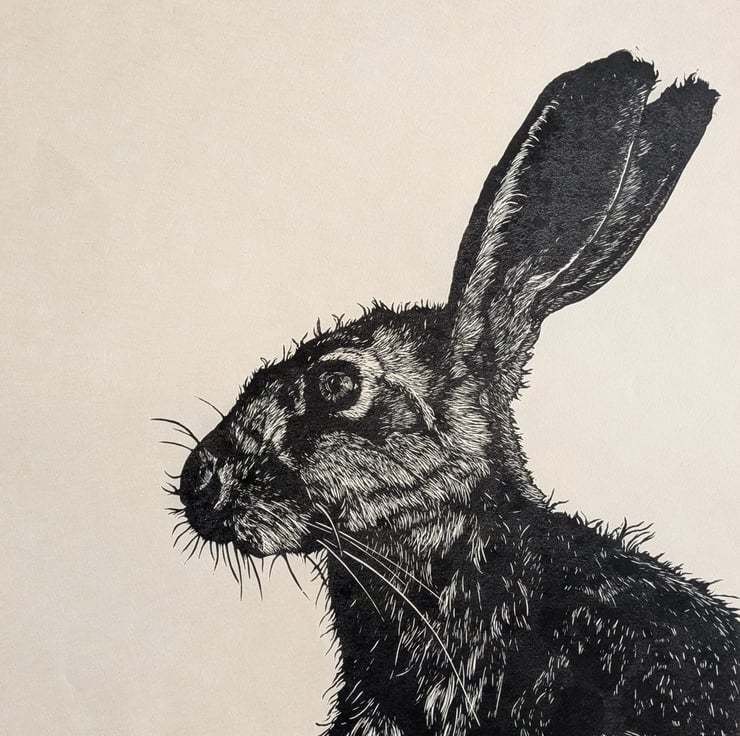 "Now You See Her" was inspired by the elusive glimpses and sudden disappearances of local hares, seemingly into thin air, also referencing the mythology of women shapeshifting into hares (and vice versa) and a reflection on women in the modern age - how at times we are made to feel all too visible/vulnerable and at others completely invisible which can be both freeing and frustrating.