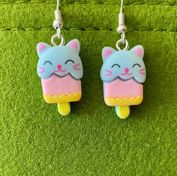 Super-cure kawai kitten lollipop earrings - a sweet treat to put a smile on your face.