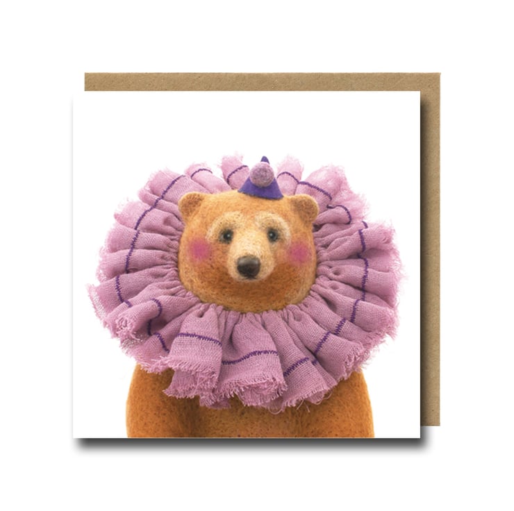 A whimsical circus bear greeting card, printed from my original needle felted bear artwork. Suitable for any occasion, the perfect card to brighten the day of any bear lover.