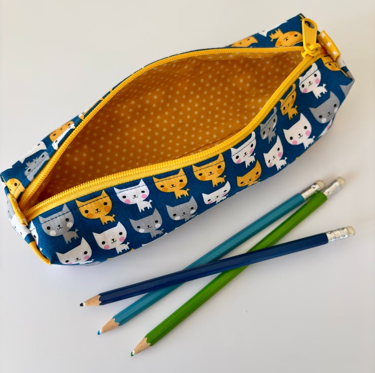 Such a great fabric for cat lovers in a really useful pencil case or pouch.