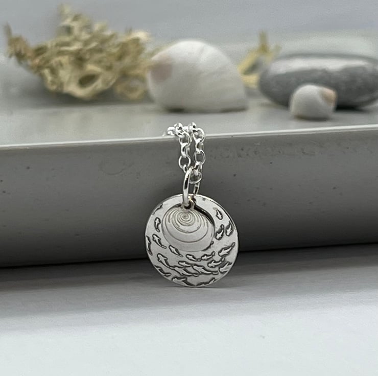 Handmade Sterling Silver Seaside Charm Pendant, Shell and shoal
