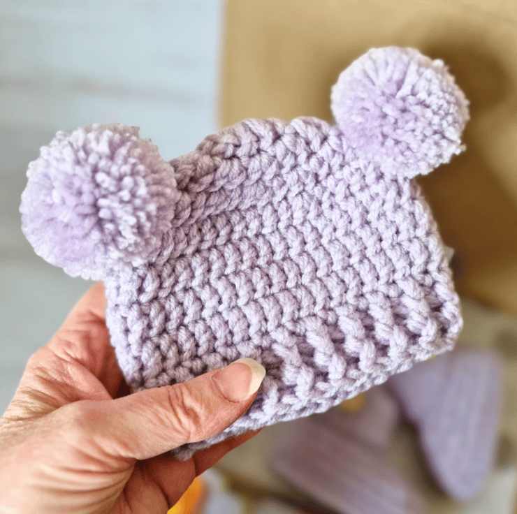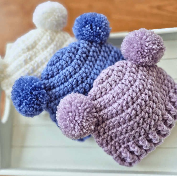Handmade Crochet Baby Double Pom-Pom Hat – Newborn to 12 Months
