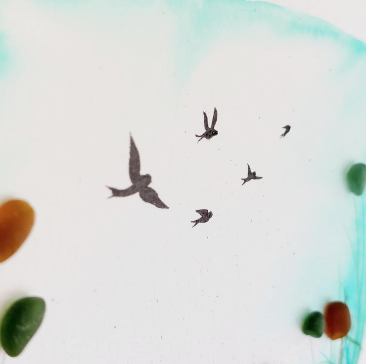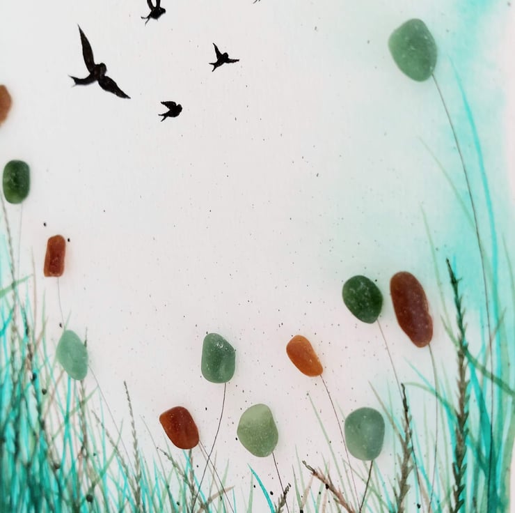 I have very recently fallen in love with watercolour as a medium and I'm delighted to have found a way to incorporate this into my love of sea glass in a way that is unique to me. I hope you are drawn to the natural beauty of the colours in this truly one-off bespoke piece, inspired by the fields in my home town of Pershore.