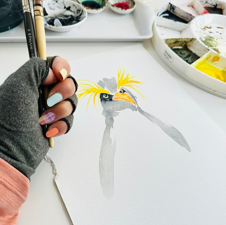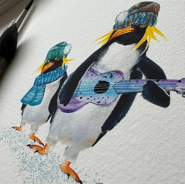 Who doesn't love cute wildlife, especially rock hopper penguins. They are such characters. I love their personalities and have currently been trying to depict some of their lovely nature through my painting. I love using professional watercolour paints as they give you the vibrancy and depth needed for fun pieces like this.