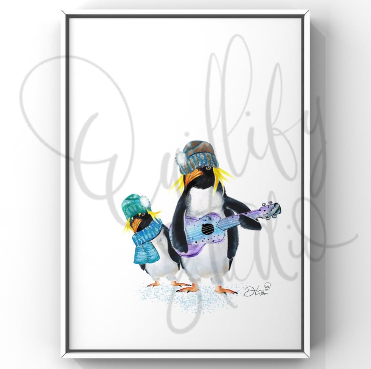This print of 'Salty and Pepper' the rock hopper penguins doing karaoke. In honour of the muso's in my family.