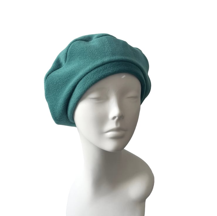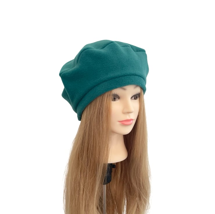Teal blue fleece beret for women