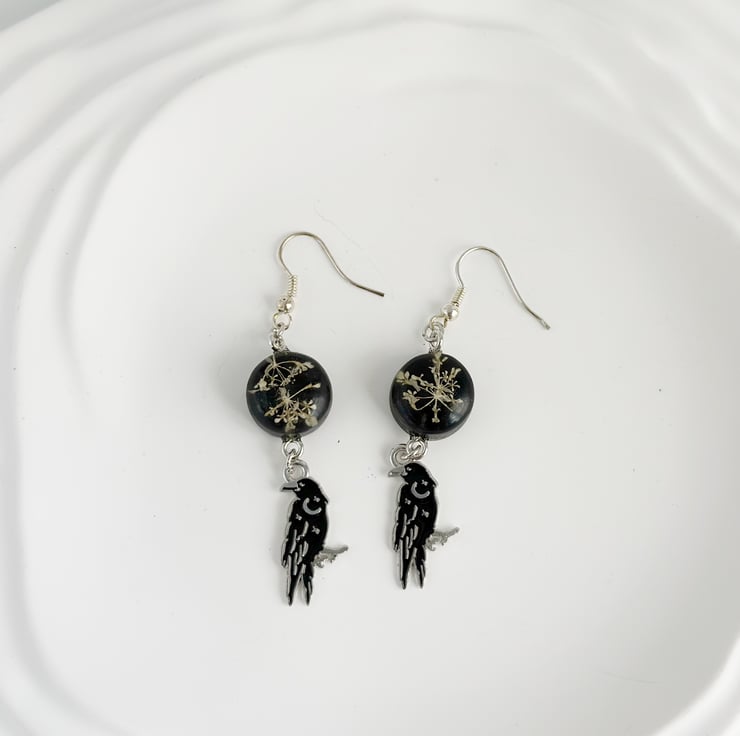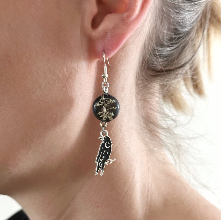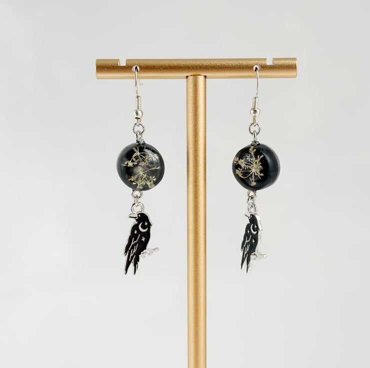 Add a touch of mystery and elegance to your style with these unique raven earrings.