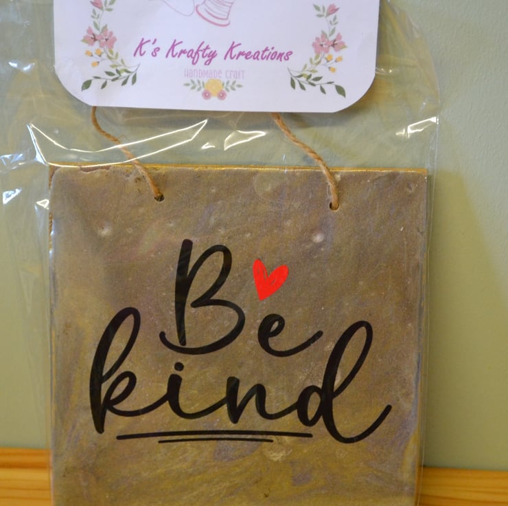 This “Be Kind” sign was inspired by the simple but powerful idea that kindness brings light to the world. I wanted to create a small reminder that could hang in a home, spreading warmth and positivity every day. The world can be harsh at times, it's just a gentle reminder to be kind to others.