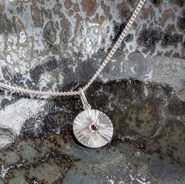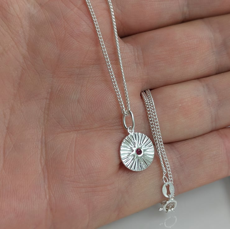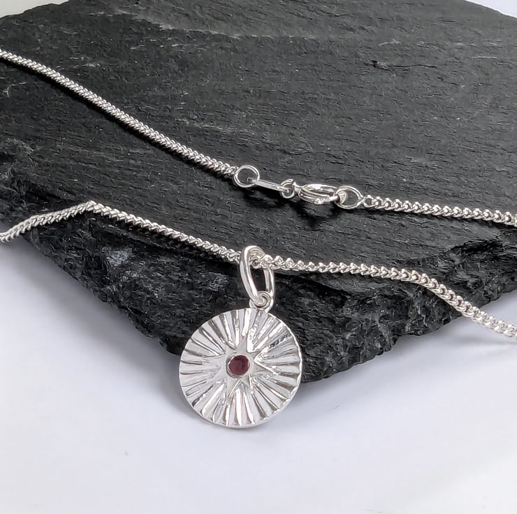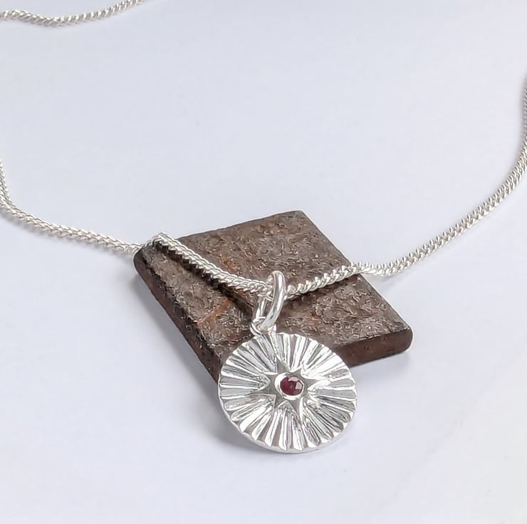 Cast silver Starburst designed pendant set with a beautiful natural ruby gemstone