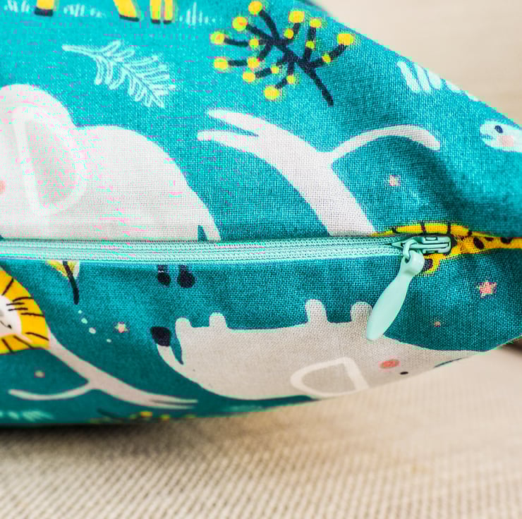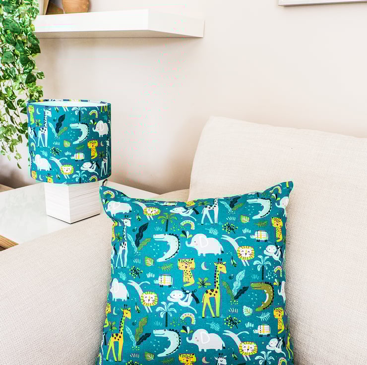 This crazy gorgeous fabric just makes me happy! A collection of fun cartoon animals mainly found on safari - elephants, giraffes, lions, crocodiles, leopards, monkeys - the lot! The lovely bright emerald/jade/teal green (hard to describe the colour) will add a touch of cheeriness to any room, but especially a child's room or nursery.