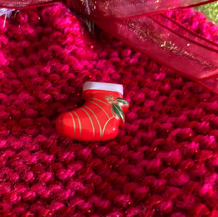 There is a cute little Christmas stocking button on the front. Finishing it off it is tied together by a red organza ribbon with gold threaded down the centre line