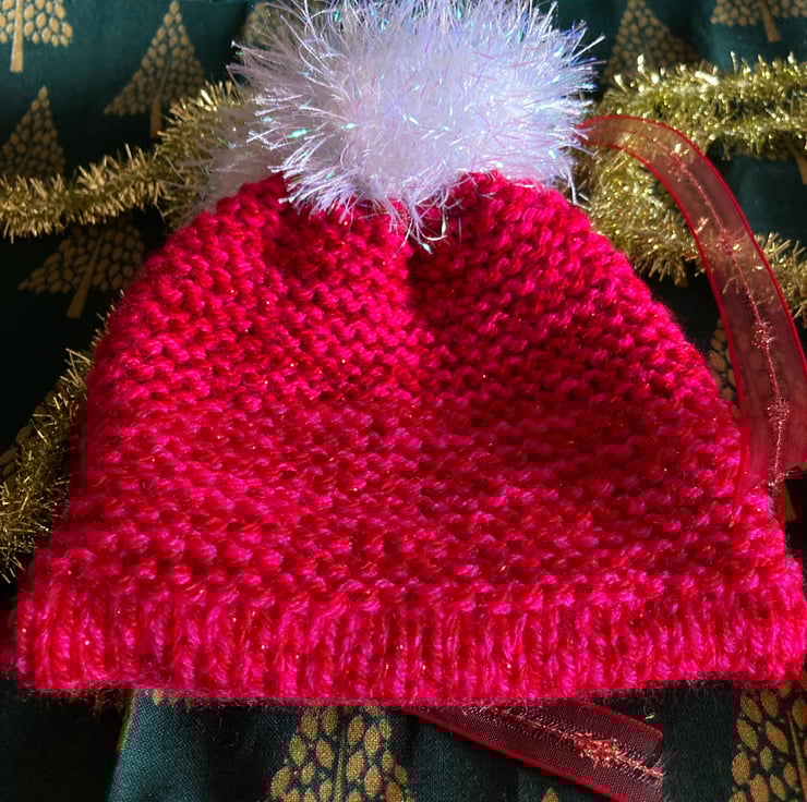 It is made using a dark shimmery pink colour and to top it off some white sparkly yarn