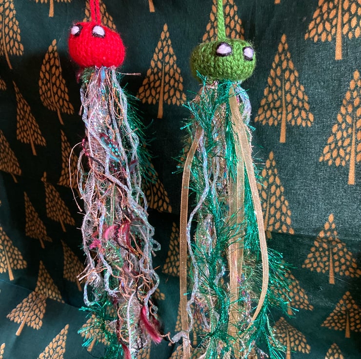 2 sparkly jellyfish ready to hang on your Christmas tree, door handle, shelf or wall.