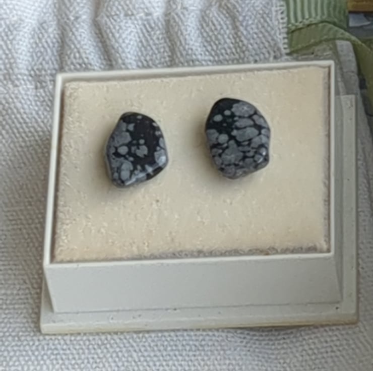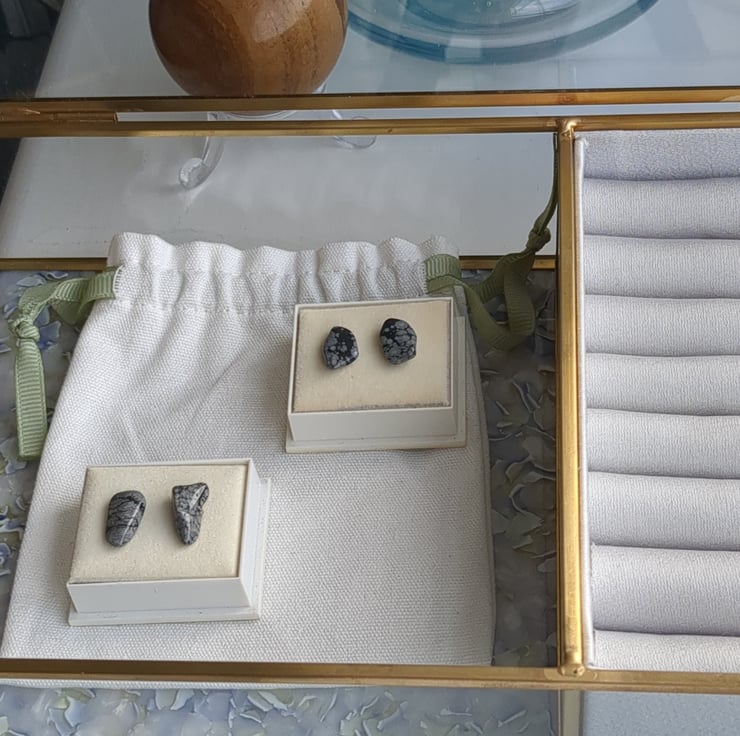 Here are a pair of Apache tears stud earrings. Each gemstone is unique and makes a striking pair.