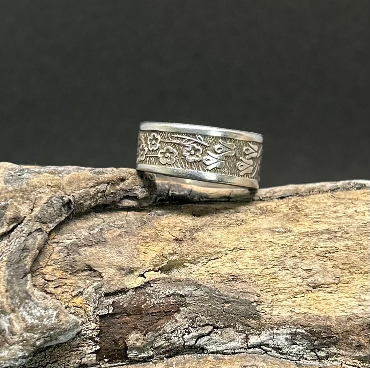 I was inspired by the idea of turning everyday objects into meaningful jewellery. The engraved flowers reminded me of wild blooms, and I wanted to preserve that natural beauty in a wearable form. By reworking stainless steel spoons, I can create eco-friendly jewellery that carries history while being tough enough for everyday wear.