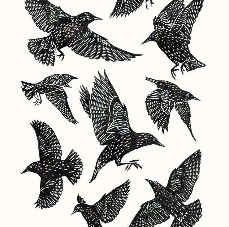 https://folksy.com/items/8544324-Starlings-four-colour-A2-linocut-screen-print