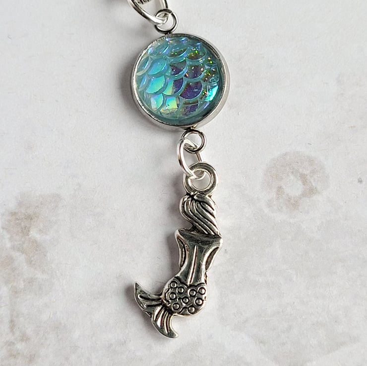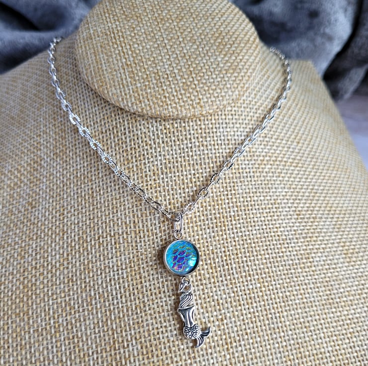 Tiny Treasures Mermaid Necklace, Iridescent Scales Cabochon, Minimalist Necklet