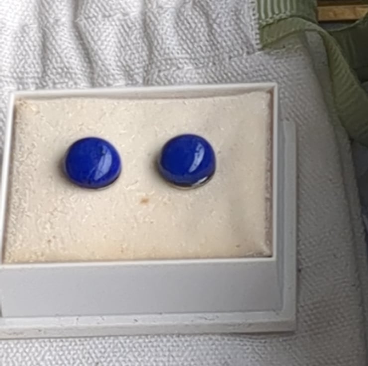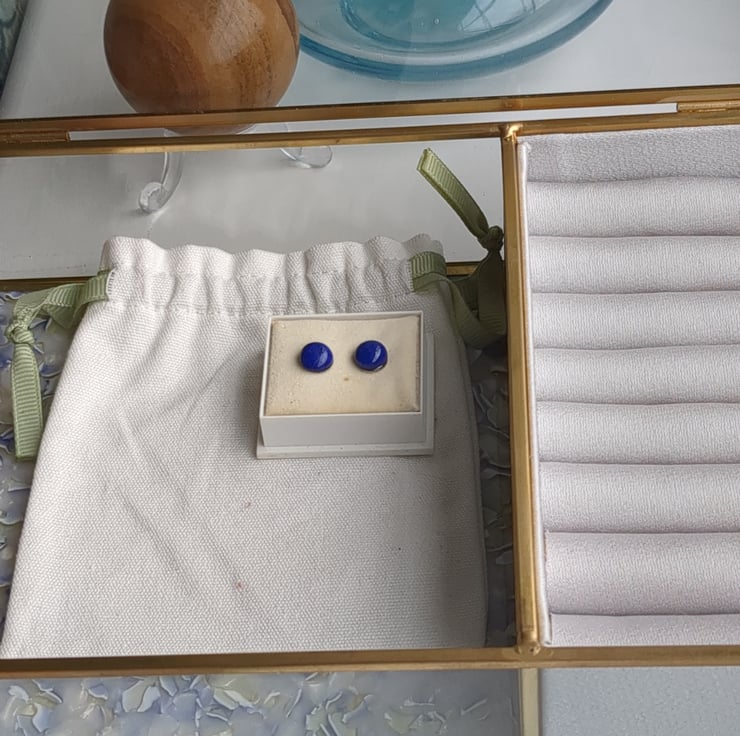 Here are a pair of Lapis Lazuli stud earrings. Each gemstone is unique, having natural variations in each gemstone.