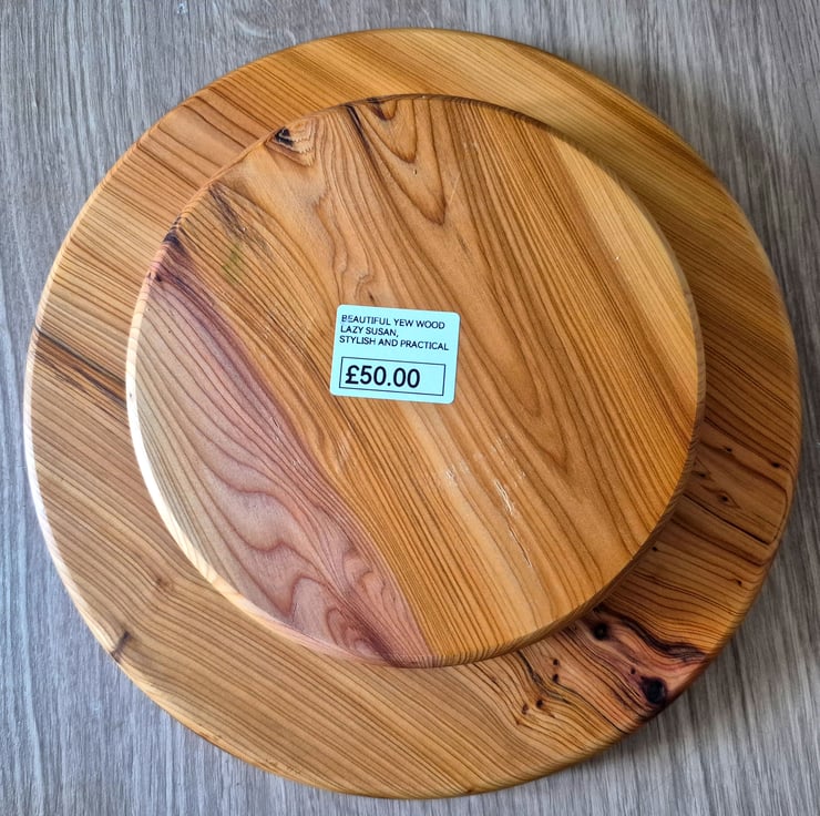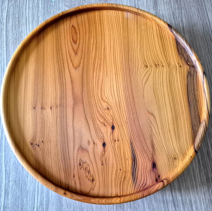 I created this lazy Susan from yew wood to showcase its natural warmth and striking grain. Yew has a timeless beauty, with flowing patterns and rich tones that invite people to gather around the table. I wanted to make something both practical and beautiful — a piece that encourages sharing, conversation, and connection.