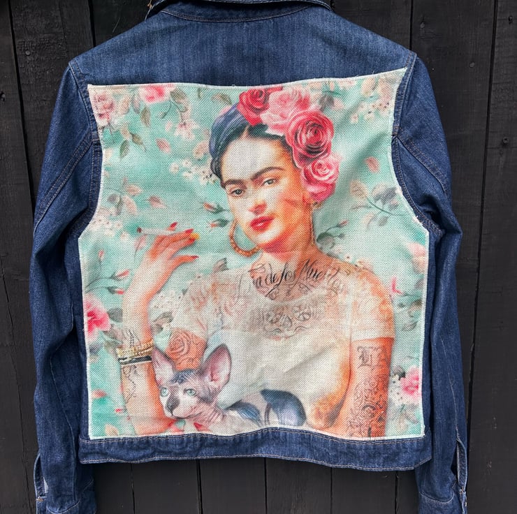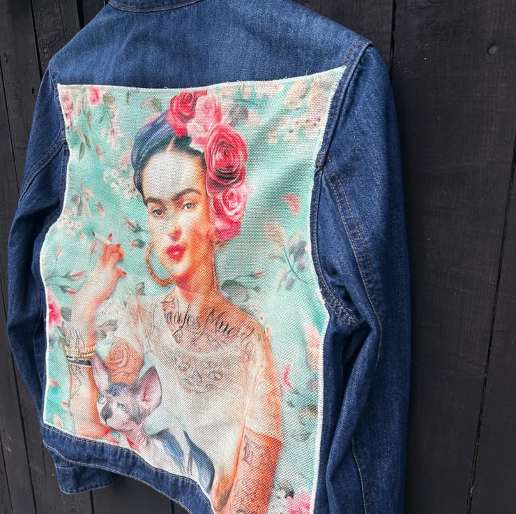 Frida Kahlo Denim jacket - Upcycled - Reworked - Size 12-14